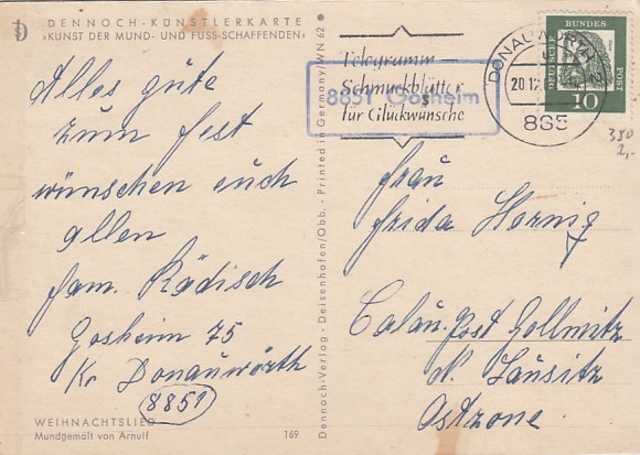 Landpoststempel Gosheim Glückwunsch Weihnachten