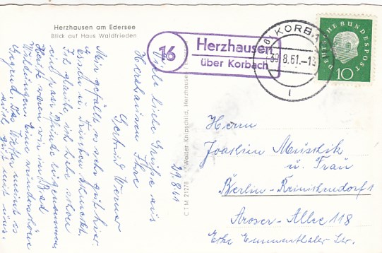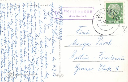 Landpoststempel Asel Korbach Jugendherberge Hohe Fahrt Edersee Hessen