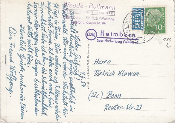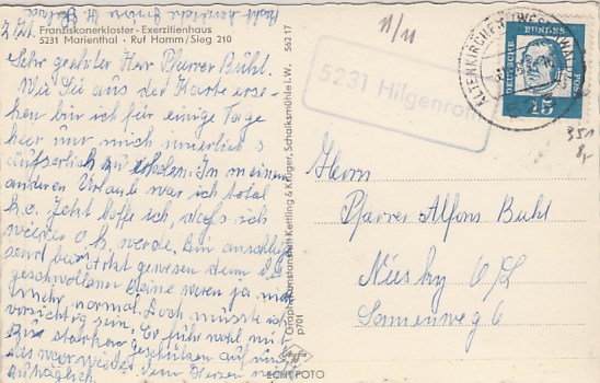 Landpoststempel Appenfeld AK Homberg 1963