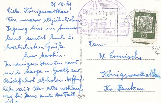 Landpoststempel Obercunnersdorf Hosenmühle bei Klingenberg Höckendorf