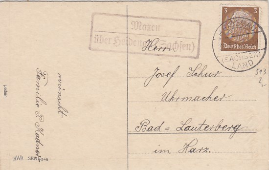 Landpoststempel Hirschfeld Leipzig