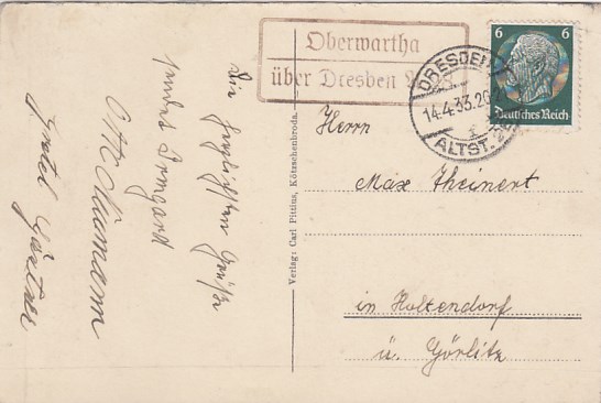 Landpoststempel Oberwartha AK Kötzschenbroda-Oberlössnitz