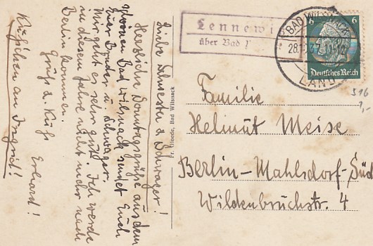 Landpoststempel Lennewitz Bad Wilsnack Plattenburg