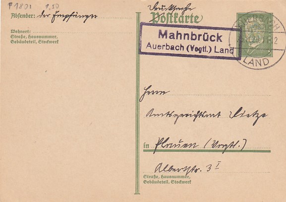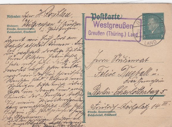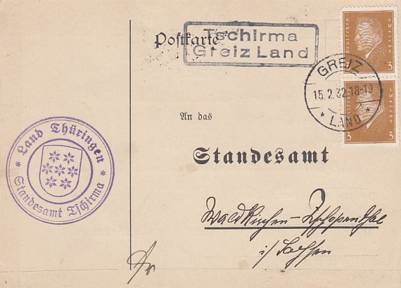 Landpoststempel Tautenburg Camburg Saale Land 1932
