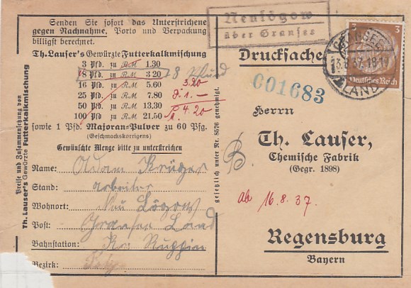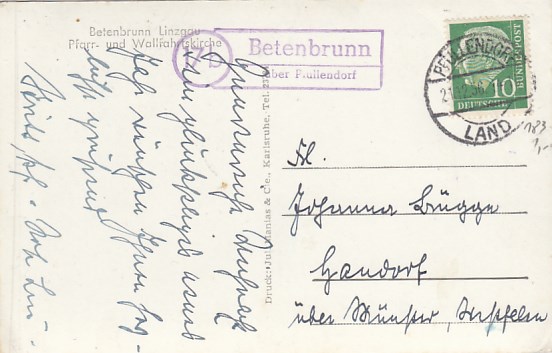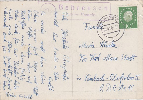 Landpoststempel auf Brief Bernshausen Duderstadt