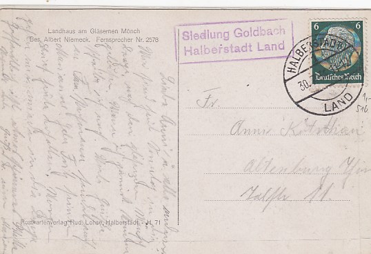 Landpoststempel Siedlung Goldbach Halberstadt Land