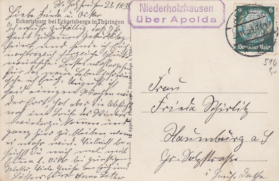 Landpoststempel Niederholzhausen AK Eckartsburg Eckartsberga