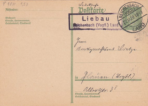 Landpoststempel Oberdorf Hohenstein-Ernstthal AK Stollberg Lehrerseminar