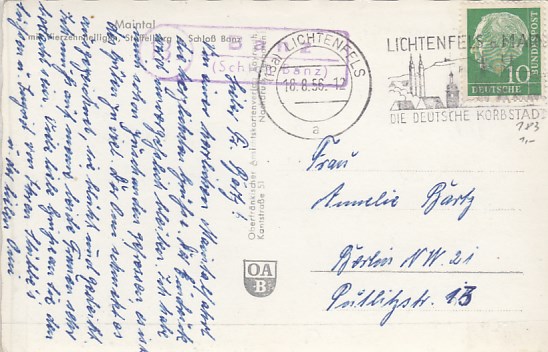 Landpoststempel Biebernheim Burg Rheinfels St.Goar