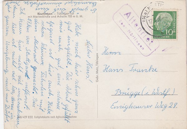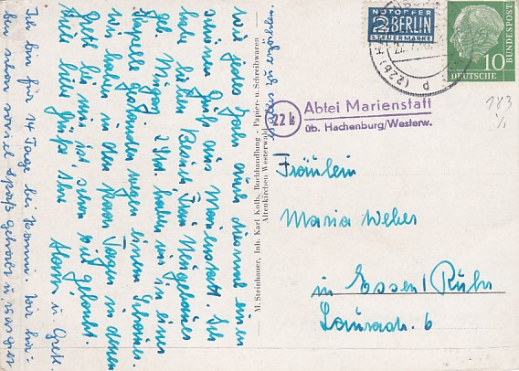 Landpoststempel Abtei Marienstatt Kloster Marienthal Altenkirchen Westerwald