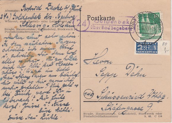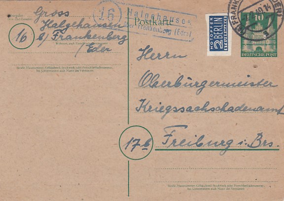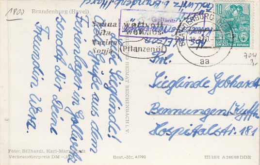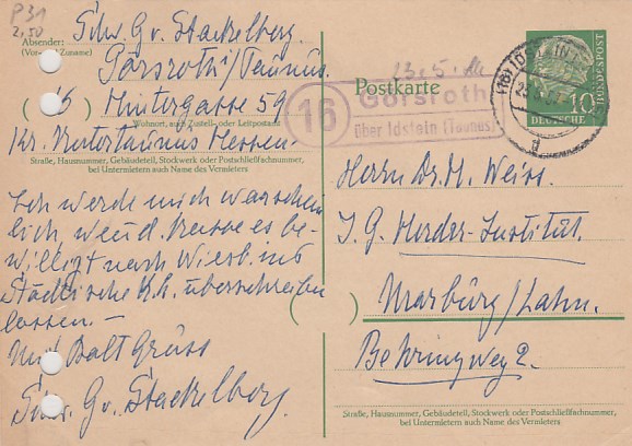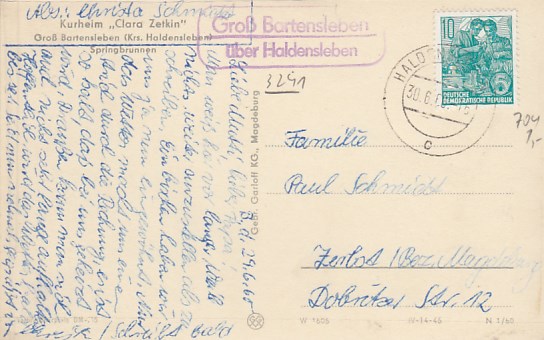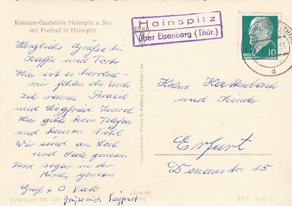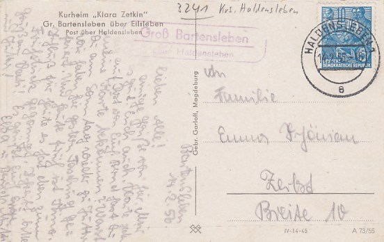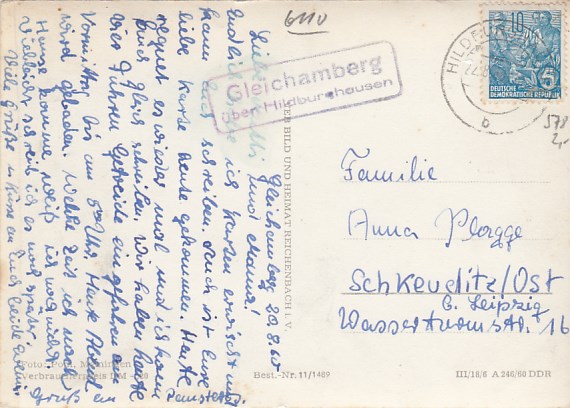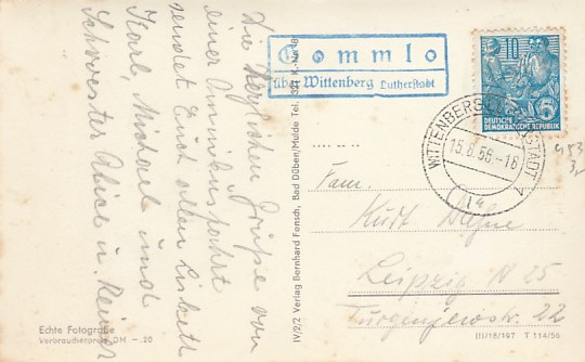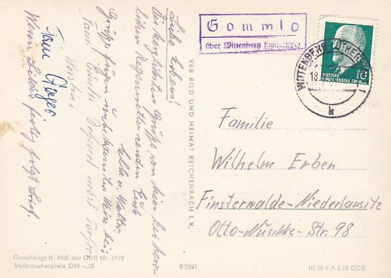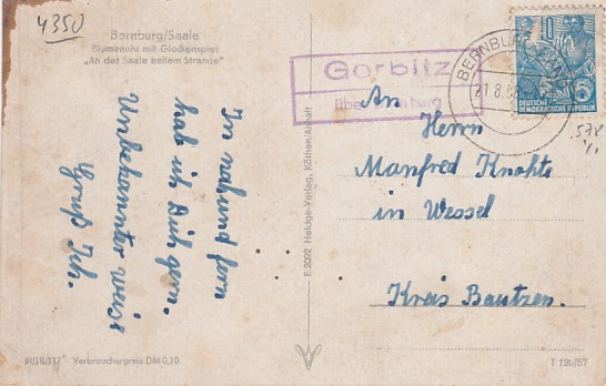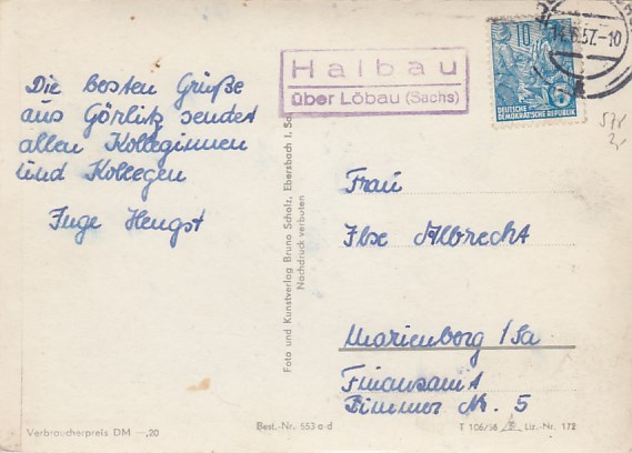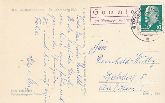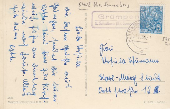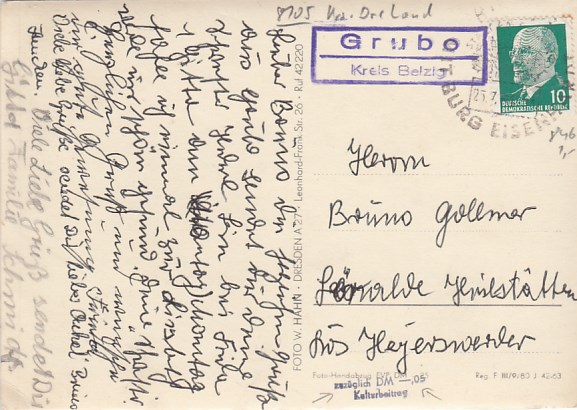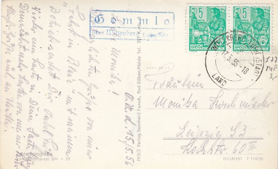 Landpoststempel Grünberg an der Röder Kreis Dresden 1958