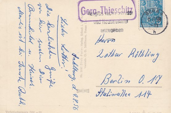 Landpoststempel Gera-Thieschitz AK Saalburg