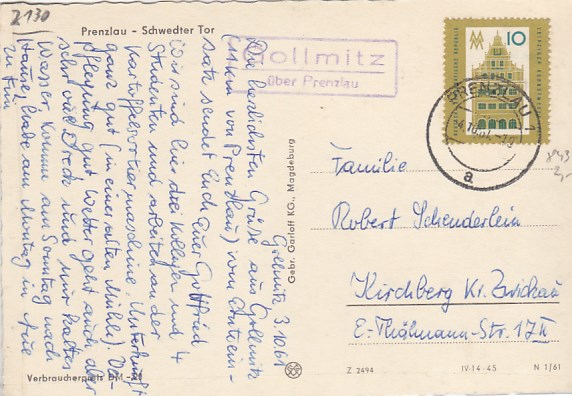 Landpoststempel Gollwitz AK Brandenburg Havel