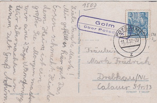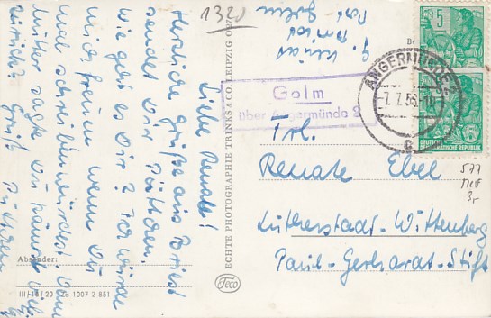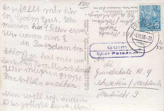 Landpoststempel Golm AK Angermünde Einstein Schule