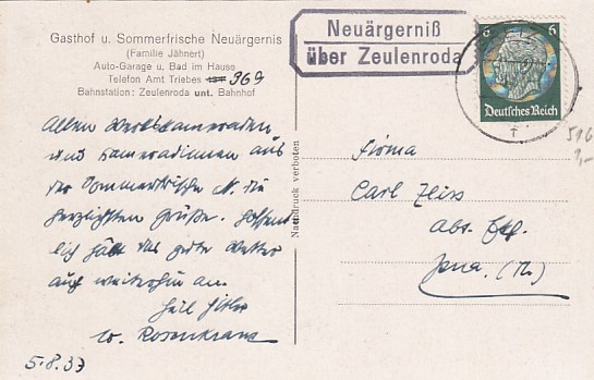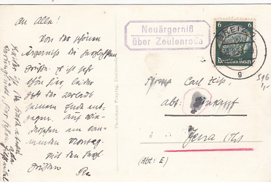 Landpoststempel Hainspitz Jena Gaststätte Paradies-Cafe