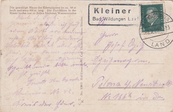 Landpoststempel Kleiner Bad Wildungen Talsperre Edersee