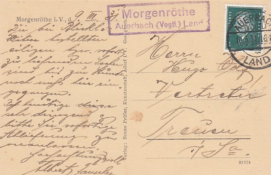 Landpoststempel Morgenröthe AK Zeughaus Rautenkranz Vogtland