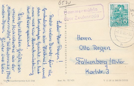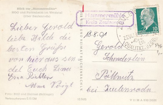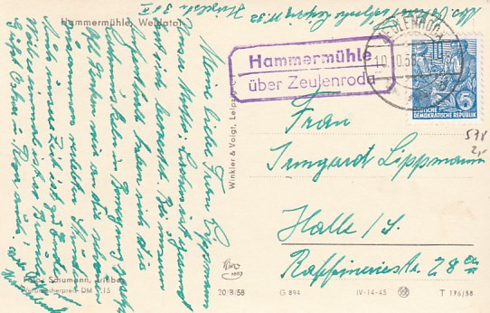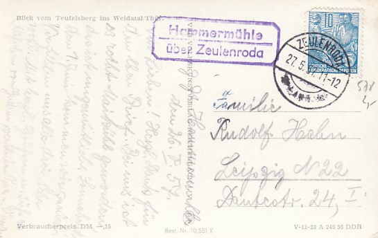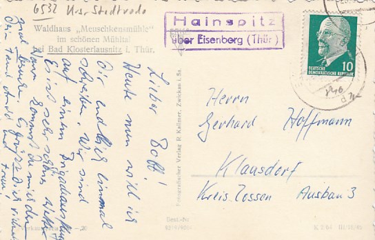 Landpoststempel Hainspitz Waldhaus Meuschkensmühle Mühltal Bad Klosterlausnitz