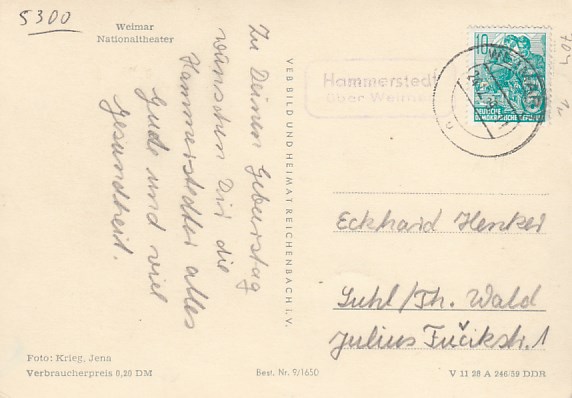 Landpoststempel Hammerstedt AK Bad Liebenstein