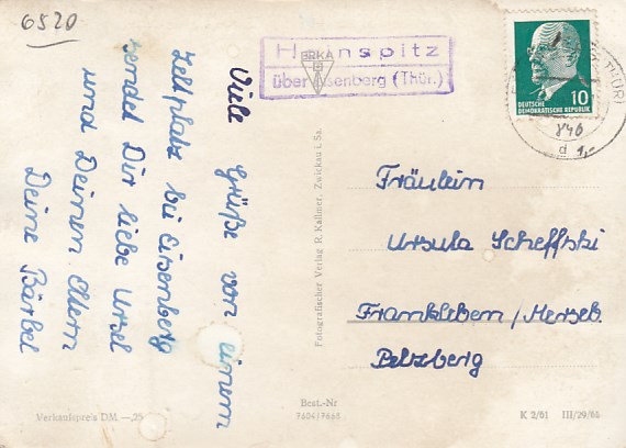 Landpoststempel Heinersdorf Lobenstein Burg Ranis
