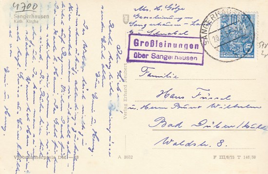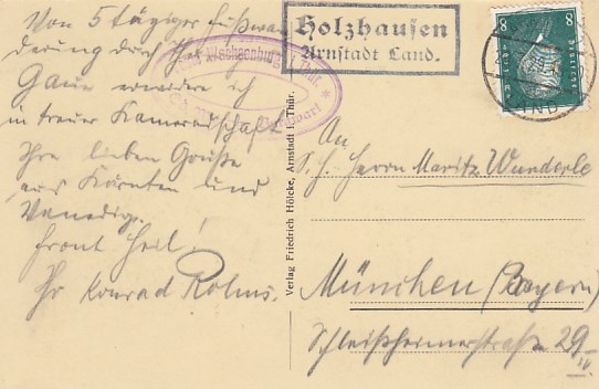 Landpoststempel Holzhausen Arnstadt Wachsenburg Wabderslebener Mühlberger Gleiche