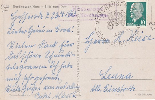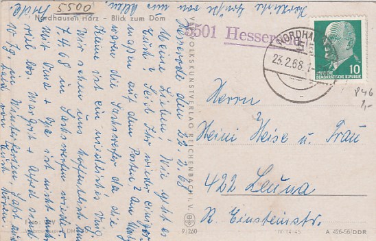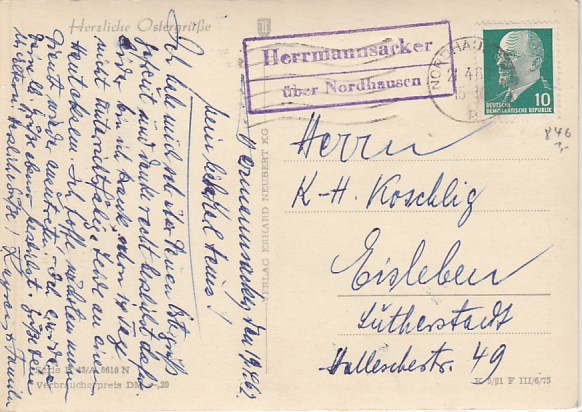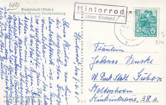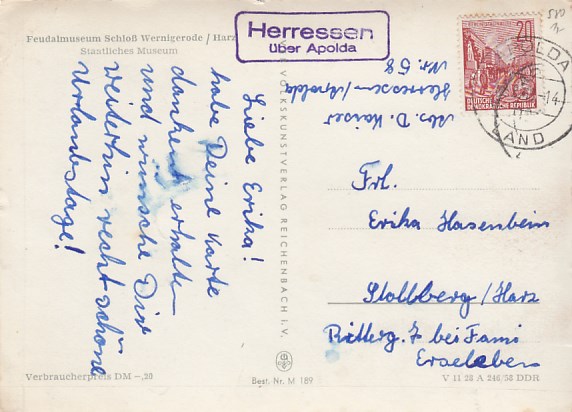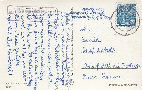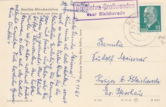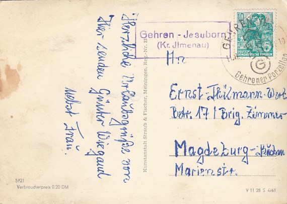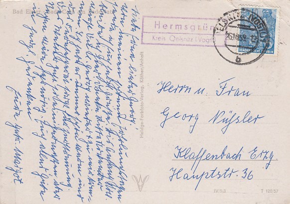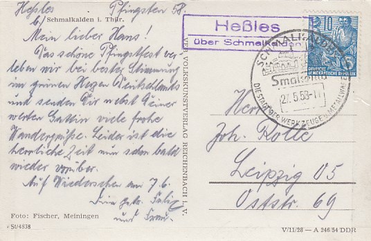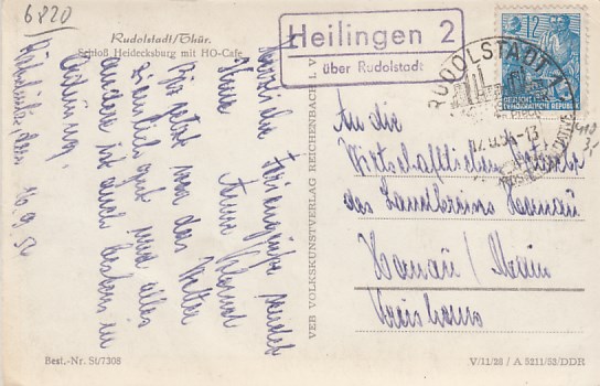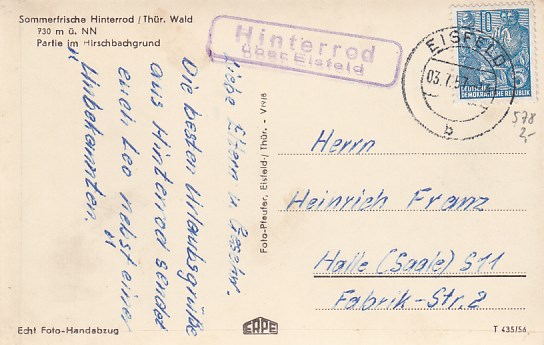 Landpoststempel Henfstädt Hildburghausen AK Themar 1960