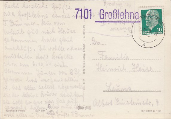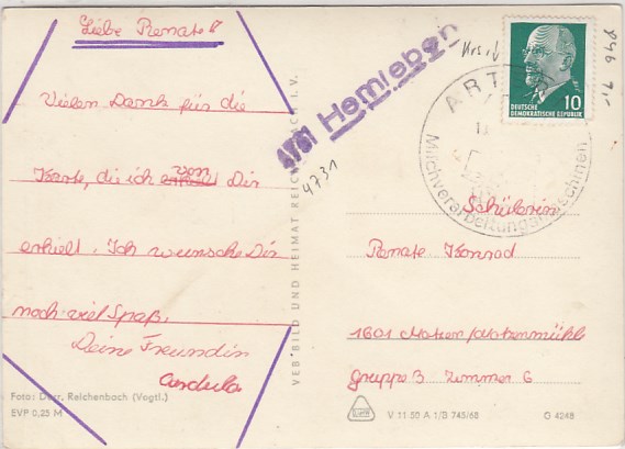 Landpoststempel Helmsdorf Sebnitz Handwerkerheim 1961