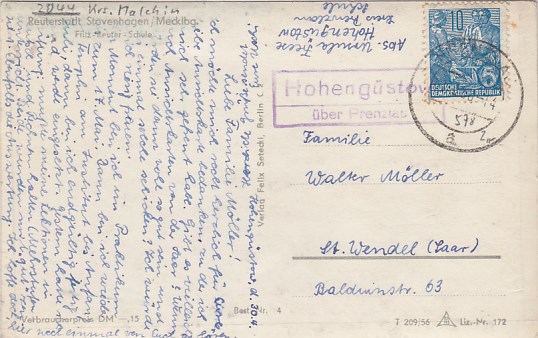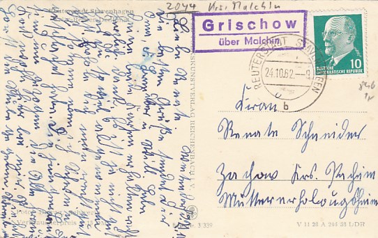 Landpoststempel Grischow Malchin AK Stavenhagen