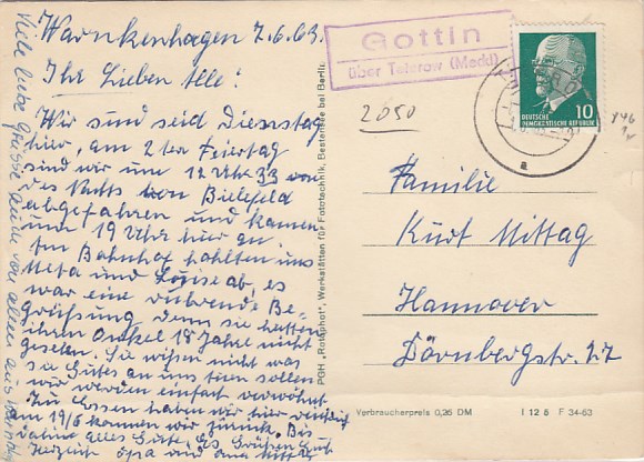Landpoststempel auf Brief Joachimshof Neustadt Dosse