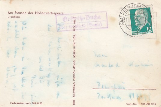 Landpoststempel Goßwitz-Bucha Hohenwartesperre