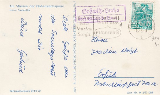 Landpoststempel Gräfenwarth Bleiloch-Saaletalsperre