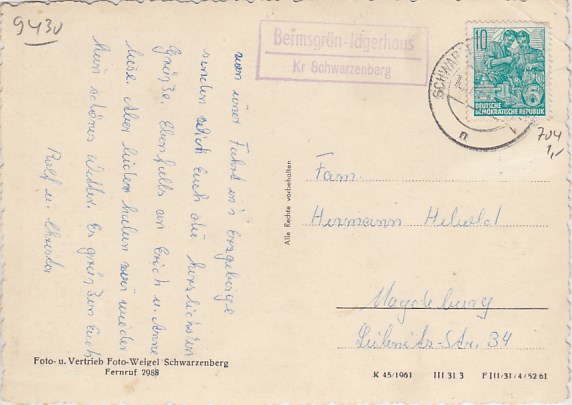 Landpoststempel Bermsgrün-Jägerhaus Schwarzenberg