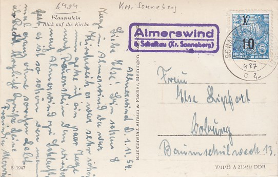 Landpoststempel Ammelsdorf Talseperre Lehnmühle