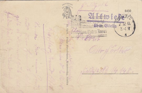 Landpoststempel Altwiese Görlitz AK Klein Biesnitz