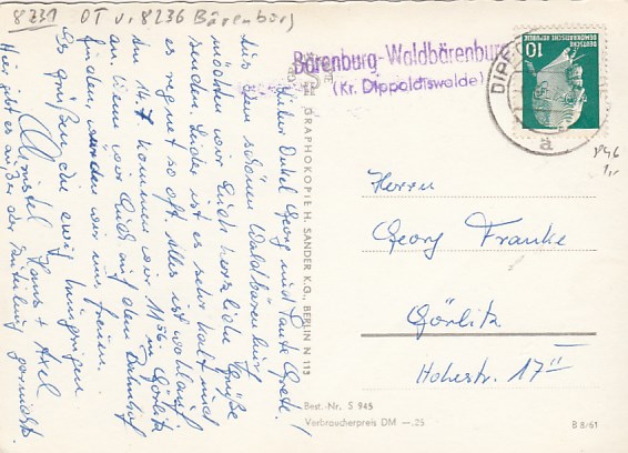 Landpoststempel Berbersdorf Hainichen Blumenuhr