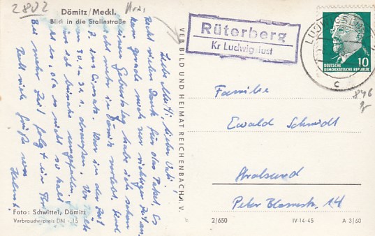 Dömitz Stalinstraße Landpoststempel Rüterberg