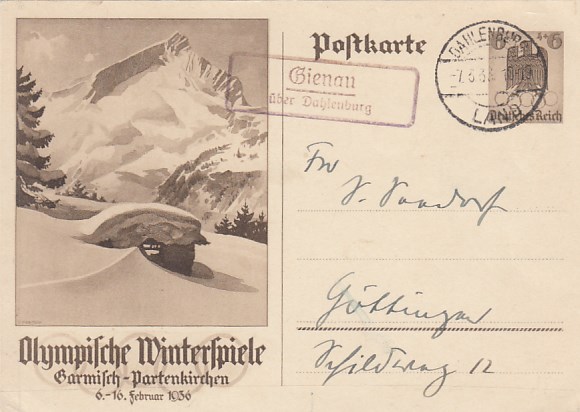 Landpoststempel Sienau Dahlenburg Ganzsacher Olympia 1936