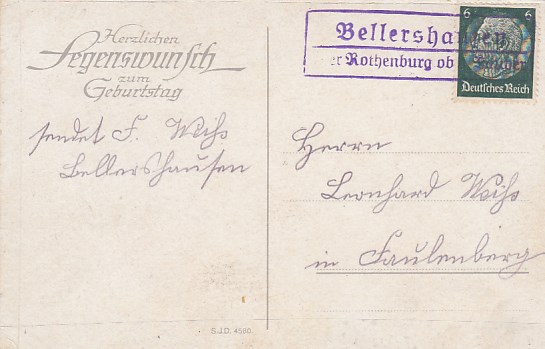 Landpoststempel Bellershausen bei Rothenburg ob de Tauber AK Religion