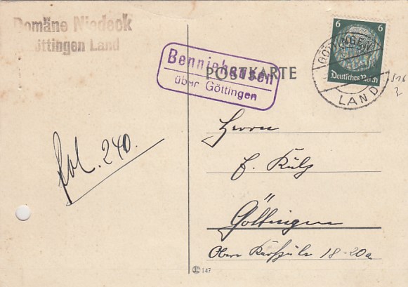 Landpoststempel Benniehausen bei Göttingen