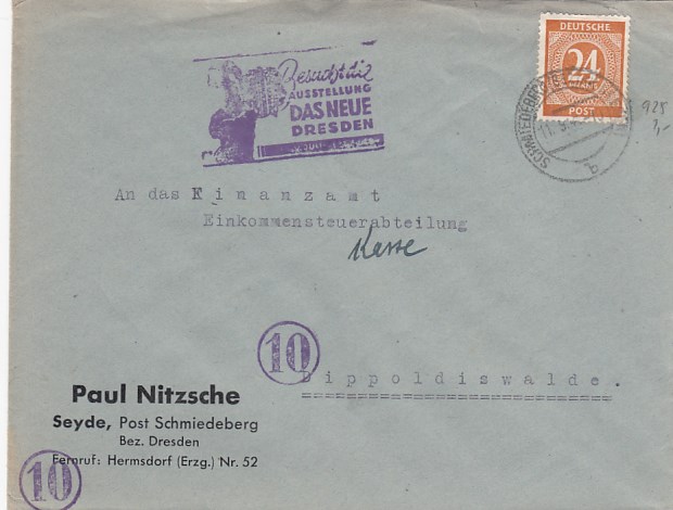 Anlaß Stempel DDR auf Brief Frauenstein Dresden Ausstellung 1946