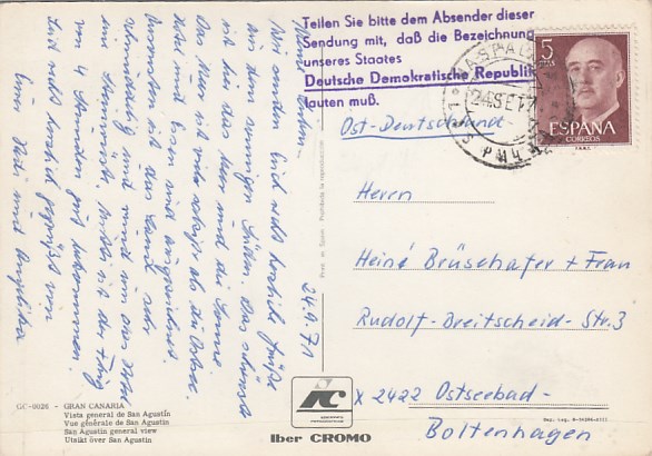 Anlaß Stempel DDR Politik auf AK Bansin Frieden Einheit glückliches Leben