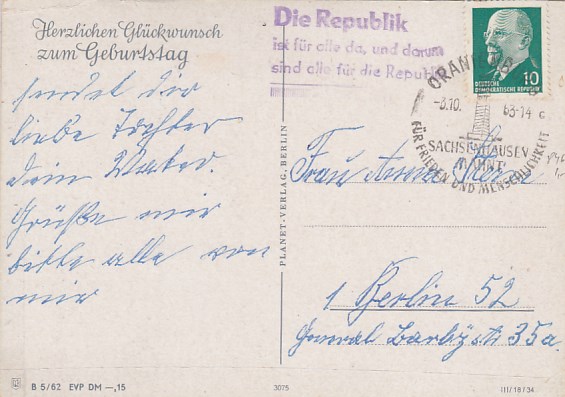 Anlaß Stempel DDR Politik auf Brief Berlin Mitte Nicht der Sowjetzone 1961