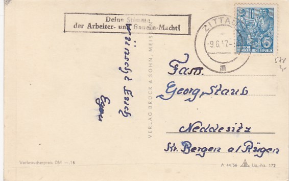 Anlaß Stempel DDR Politik auf Brief Plane Arbeite Regiere mit , Templin