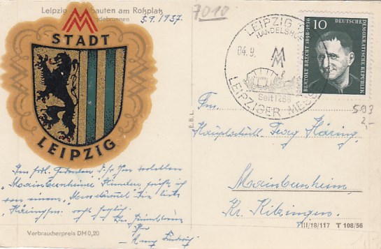 Cottbus Ganzsache mit Anlaß Stempel Institut für Philatelie 1948