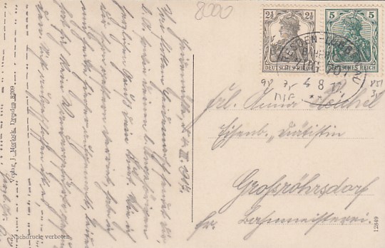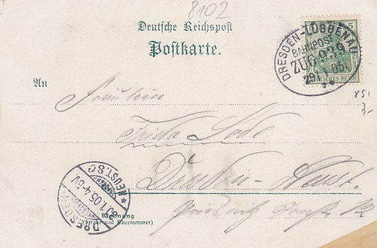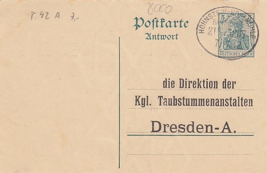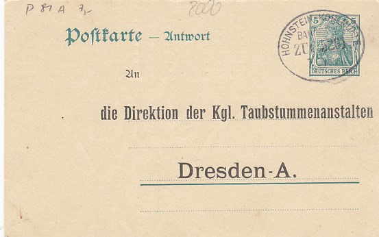 Dresden Postkarte Taubstummenanstalt Bahnpoststempel Hohnstein-Kohlmühle 1911