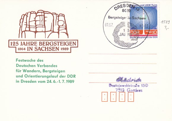Dresden Postkarte mit Anlaß Stempel Bergsteigen