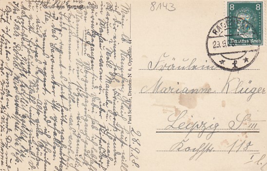 Mügeln in Sachsen Pfarrhaus Schloßstraße Landpoststempel Baderitz 1940