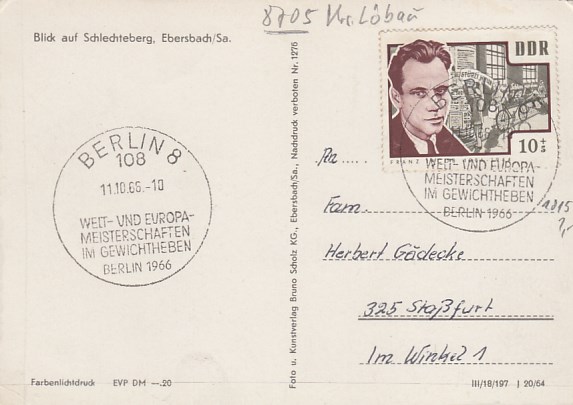 Anlaß Stempel DDR Politik auf Brief Pegau Aktivisten an die Spitze