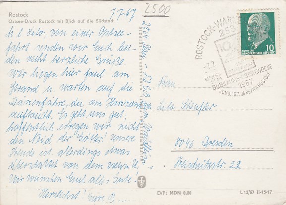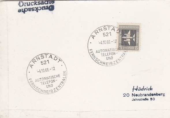 Arnstadt Thüringen Anlaß Stempel Fernschreibzentrale Telefon 1966