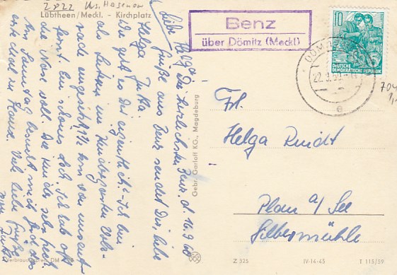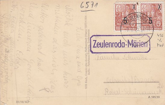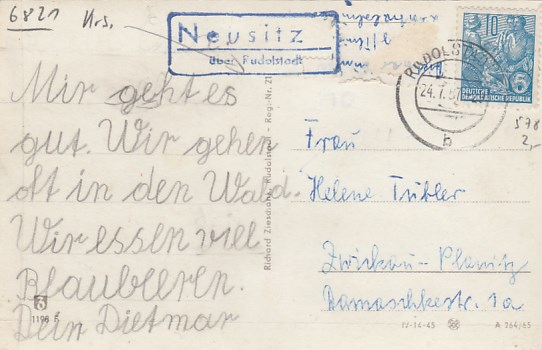 Großkochberg Landpoststempel Neusitz Thüringen 1955